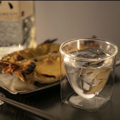 RayES/レイエス ダブルウォールグラス ジュウバコマス SJM-01 135ml×2 蓋付き国産桧枡 薄飲み口仕様