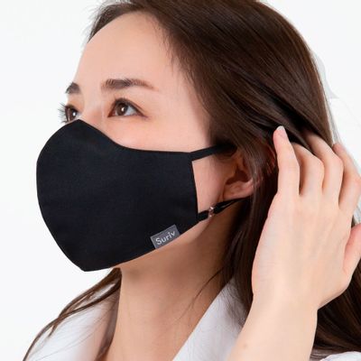 反転攻勢。 "スリーヴ [suriv]" ①包む、守る。 ②ウィルスに屈せず逆境を跳ね返す。 ウィルス [virus] を反転した表記です。 Suriv|スリーヴは、“逆境をはね返す”という想いを込め、 高性能フィルターや抗ウイルス素材などを搭載した、新しい時代のマスクです。