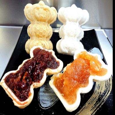 熊本県山鹿市の夏の風物詩山鹿燈籠踊りをモーチーフに金燈籠をかたどったもなかです。原材料となる小豆は、小倉餡に北海道産小豆、白餡には希少小豆と言われる北海道産白小豆を使用した甘さ控えめで無添加の昔ながらの和菓子です。