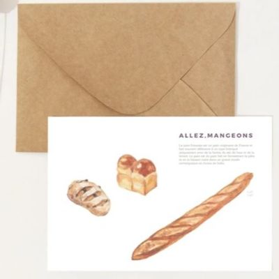 ポストカード【01:食パンとレーズンブレットとフランスパン】インテリアに、贈り物にどうぞ