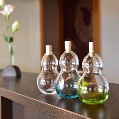 まわりの風景とシンクロ 自然に溶け込む美しさ 【Glass Forest 茶々】では、作家本人が沖縄で感じた風・香り・色彩を、吹きガラスの技法で一つひとつ丁寧にガラスへ表現しています。 目に見えないものを見える形に。自然に囲まれた生活に溶け込むような、森の中に佇むログハウスに似合うような、そんな作品づくりを心がけています。