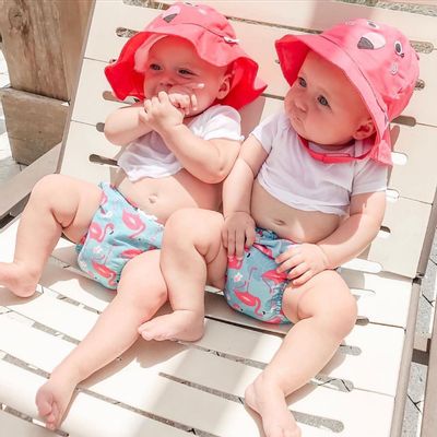 水遊びパンツ&UVカットサンハットセット|再利用OK/UPF50+/フラミンゴのフラニー