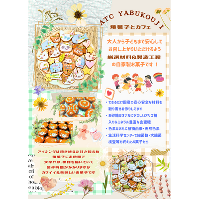 “大切な人”への想いから生まれる、からだ想いのやさしいお菓子 拝啓 時下ますますご清栄のこととお喜び申し上げます。 私ども《ATCyabukouji》では、福岡県の小さな町にて、焼菓子とカフェを営みながら、素材にこだわった「安心してお召し上がりいただけるお菓子」を製造・卸販売しております。 当店のお菓子は、"大切な人"への想いを原点に、甘さ控えめでからだにやさしく、素材の味を大切に仕上げております。 特に人気のアイシングクッキーは、絵本のようなやさしいデザインと、サクサクとした軽やかな食感が特長で、「可愛くて美味しい」とご好評をいただいております。