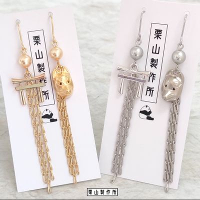 JC メガネ・マスクチェーン/狐面と鳥居チャームにシンプルジョイントチェーンとフィガロチェーンを合わせ!王道!和風モダン!