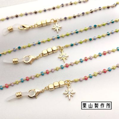 BC メガネ・マスクチェーン/ワンポイントの穏やかな発色のクリスタルチャームにシンプルモノトーン・ボールチェーンを使用!