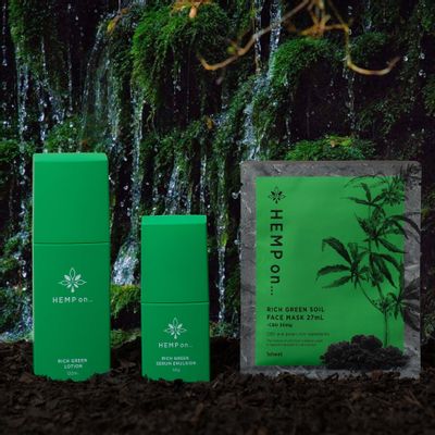 【毎日のライフスタイルに緑のグラデーションを】 HEMP on…(ヘンプオン)は生命力溢れるグリーンに着目したCBDスキンケアブランドです。 スキンケアが毎日を生きるエネルギーとなるように開発をしました。 一日の移ろいの中に新緑から深緑へのグラデーションを彩り、一人一人のライフスタイルに寄り添います。 五感を使ってグリーンを感じ、深い息を吐きながら瞼を閉じる。 その瞼の裏側には鮮やかで美しい明日のイメージが浮かぶことを信じて。