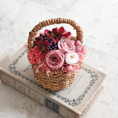 秋色コスモスのプリザーブドフラワーアレンジ/バスケットアレンジ