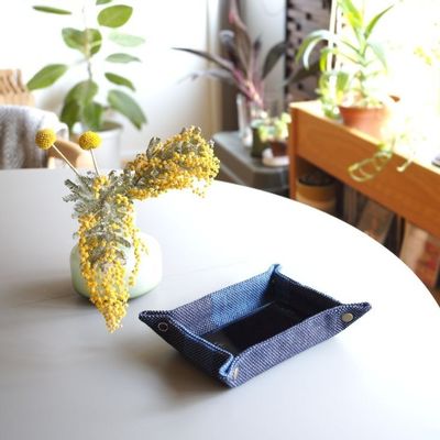 うしじま縫製 | 武州正藍染 長方形トレイ 二重刺子