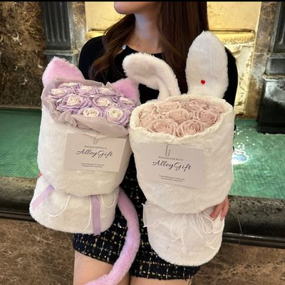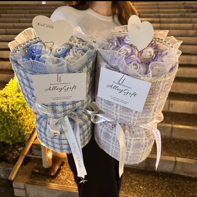 「ワンランク上の可愛さ」を追求する哲学のもと、花束のデザイン・制作・販売に取り組んでいます。 AlleyGiftは何十万フォロワーを有するインフルエンサーや若者ファッション業界を代表する方々にまで愛用されており、 『ツイードブーケ』『うさぎワンホンブーケ』(別名:うさぎブーケ)の生みの親として、 数多くのブームをSNS上で起こしてきました。 また、推し活分野でも注目されるようになり、推しの誕生日に使う花束として AlleyGiftのツイードブーケ・ワンホンブーケが数多くのオタク女子に愛用されています。 これまでの花束は、その日限りのものとして捉えられていましたが、AlleyGiftの花束はそれだけではない。 ツイードブーケ・ワンホンブーケで上質の枯れないソープフラワーを使用し、 友達の大切な日や推しの誕生日などで使う花束を、いつまでも思い出として残すことができるように取り組んでいます。 こうした取り組みから、AlleyGiftの花束は従来のものよりも価値のあるものになると私たちは信じています。